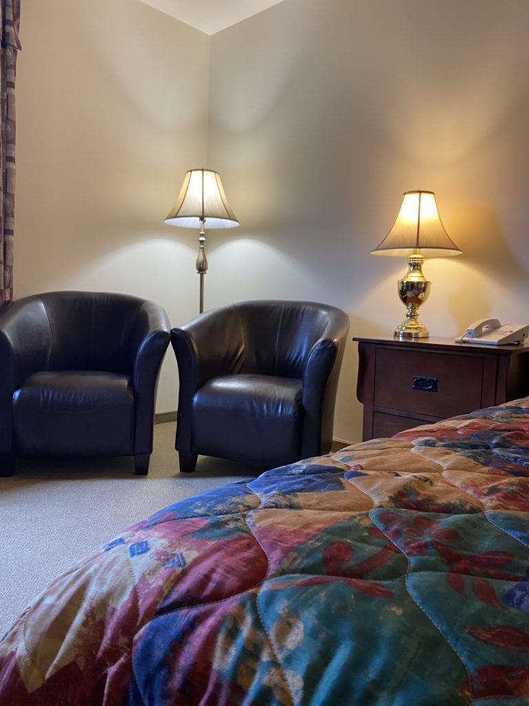 This room has a single King-size bed, comfortable seating to relax and a table and chairs to get caught up on emails or enjoy your dinner. All rooms come with in room climate control, a HD flat screen TV, mini refrigerator, microwave, coffee maker, no charge Wi-Fi, and bathtub with shower.